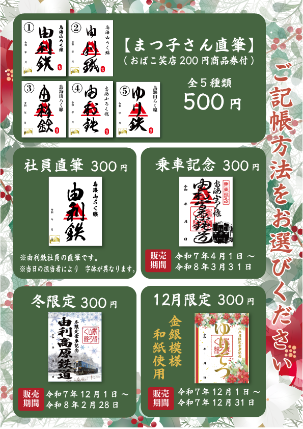 - 鉄印帳以外の物に記帳は行いません。