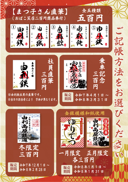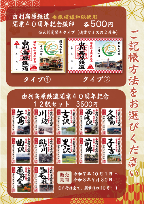 - 運行状況や自然災害等の理由により、鉄印帳の販売や記帳場所・受付時間を変更、または対応できない場合があります。あらかじめご了承ください。