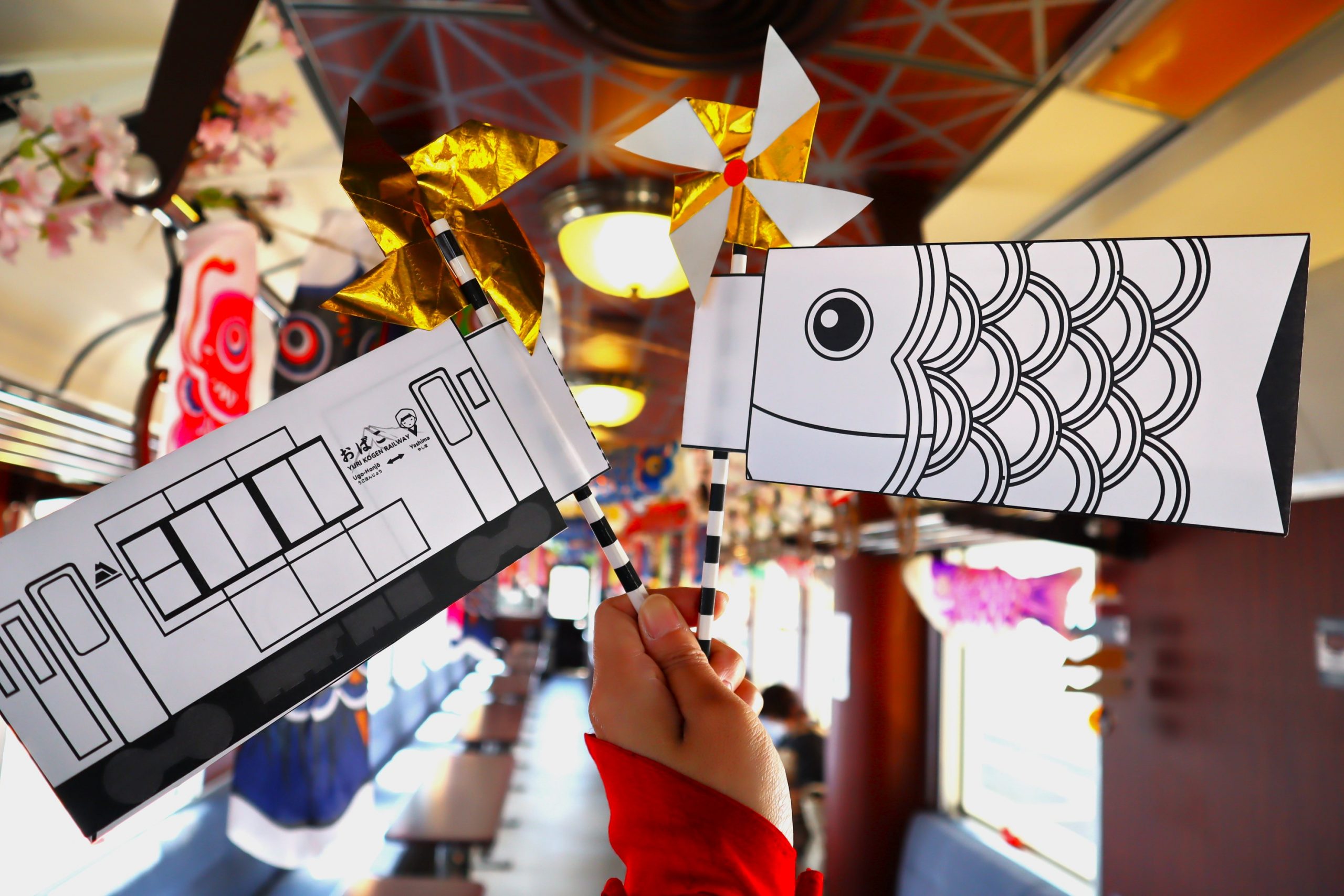 - こいのぼり列車内でペーパークラフトを購入