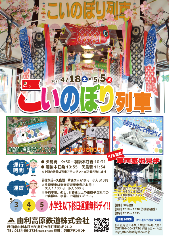 由利高原鉄道株式会社 0184-56-2736(平日9:00~17:00)
