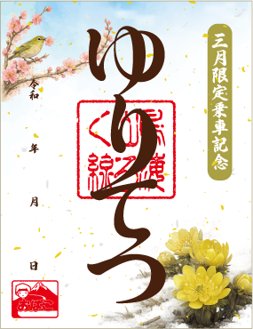 このたび、令和8年3月1日より「おひなっこ列車乗車記念」「3月限定乗車記念」および「春限定乗車記念」鉄印の販売を開始いたします。